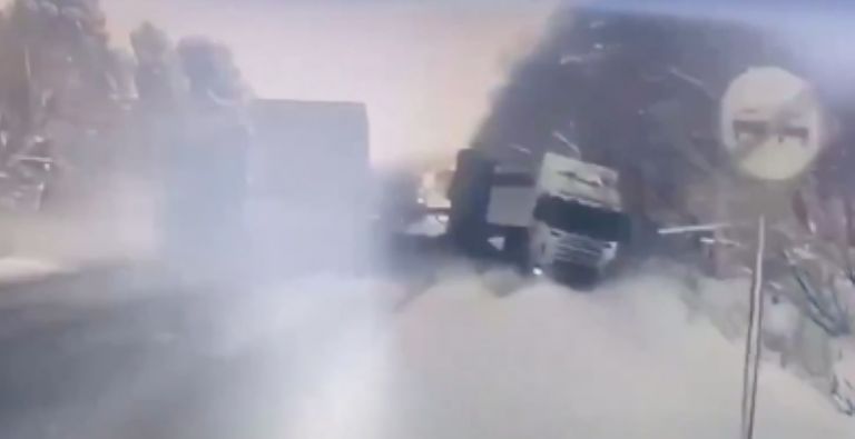 Los hechos ocurrieron en la provincia de Buriatia , en Rusia , sobre una carretera que parece haber sido lugar de caída de nieve días antes, a pesar de la magnitud del accidente los informes iniciales aseguran que “ no hubo heridos ” por los hechos.